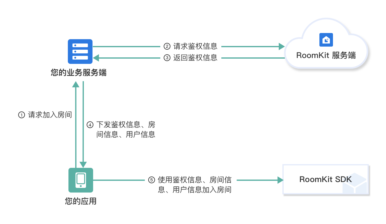 建议开发者使用业务服务器向 RoomKit 服务器请求 SDK Token 以保证鉴权数据安全。
