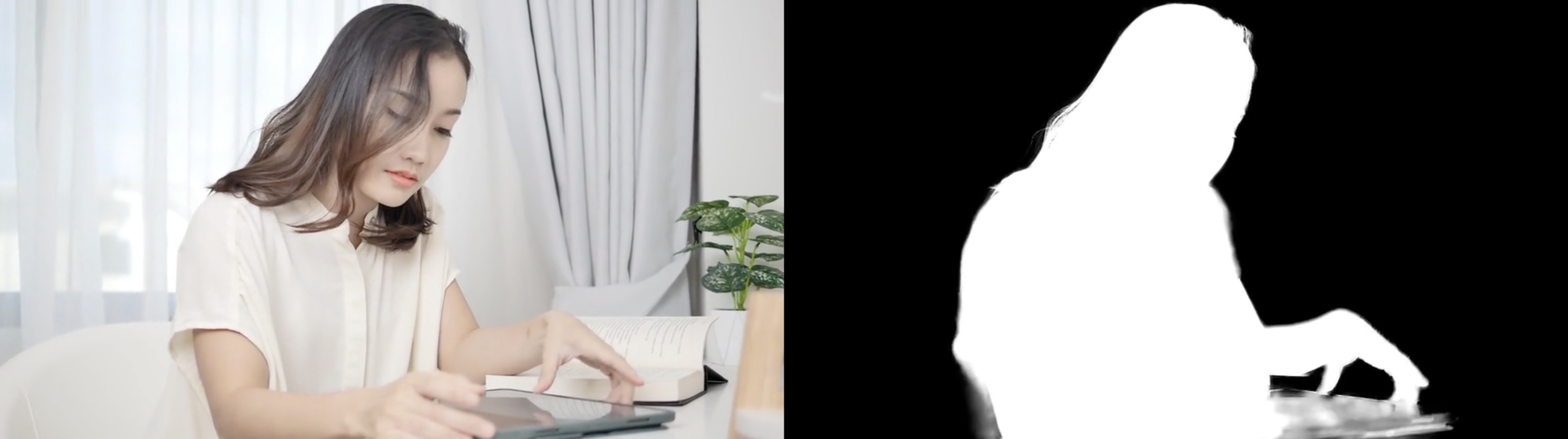 客户端播放时,会将右侧的视频的 R 通道提取出来,作为左侧对应像素点的 Alpha 通道的值。