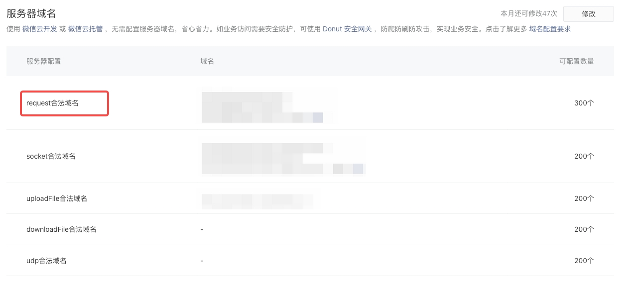 开发者如需升级到 3.6.0 或以上的版本 SDK,需在微信小程序的开发设置里,将部分域名添加至服务器域名,用于上报事件和日志,具体操作如下。